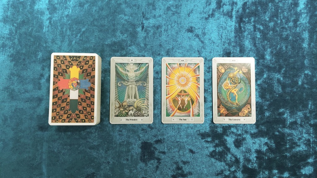アレイスタ-・クロウリ-による新しい時代(アイオ-ン)を創造するためのタロットといわれているもので、変化の連続の今のこの時代にも無理なく使用できるカードです。